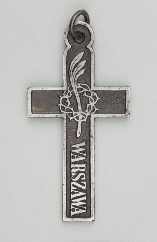 Muzeum Narodowe w Krakowie; www.zbiory.mnk.pl ;MNK IV-V-561;;fot. Chęć AndrzejW biżuterii pojawiły się nowe motywy. Te najczęstsze to godło w rozmaitych postaciach, orzeł w koronie, krzyż, kotwica, korona cierniowa, palma męczeństwa, serce. Szczególnie popularne było połączenie trzech elementów: krzyża, kotwicy i serca; zdobiły one broszki, pierścionki, naszyjniki i bransolety. Nierzadko kobiety zakładały np. bransolety czy łańcuchy w formie drutu lub kajdan. Najpopularniejszą ozdobą były jednak krzyże różnej wielkości, często z umieszczonymi na nich symbolami religijno-patriotycznymi lub datami dziennymi manifestacji patriotycznych czy pogrzebów poległych w nich demonstrantów.