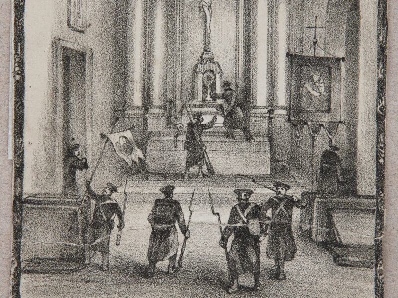 O świcie dnia 8 kwietnia 1863 r. przeprawił się przez Wisłę oddział majora Andrzeja Łopackiego, byłego kapitana austriackiego. Oddział dobrze uzbrojony, liczył 200 strzelców, 30 kosynierów i 30 jazdy. Strzelcy podzieleni byli na dwie kompanie dowodzone przez kapitanów Czesława Tabaczyńskiego i Witolda Rogojskiego, obu oficerów z wojska austriackiego. Między oficerami znajdowali się: Stanisław Tabaczyński - brat kapitana, baron Aleksander Brückman były oficer papieski. Kawalerią dowodził rotmistrz Bertoli - wojskowy austriacki, którego porucznikiem był Gąsiorowski. Kapitanem kosynierów był Olszewski. Adiutantem Łopackiego - Giebułtowski, a szefem sztabu Franciszek Żelichowski, furierem Kisielewski („Wujek”), kapelanem oddziału był ksiądz Serafin Szulc.