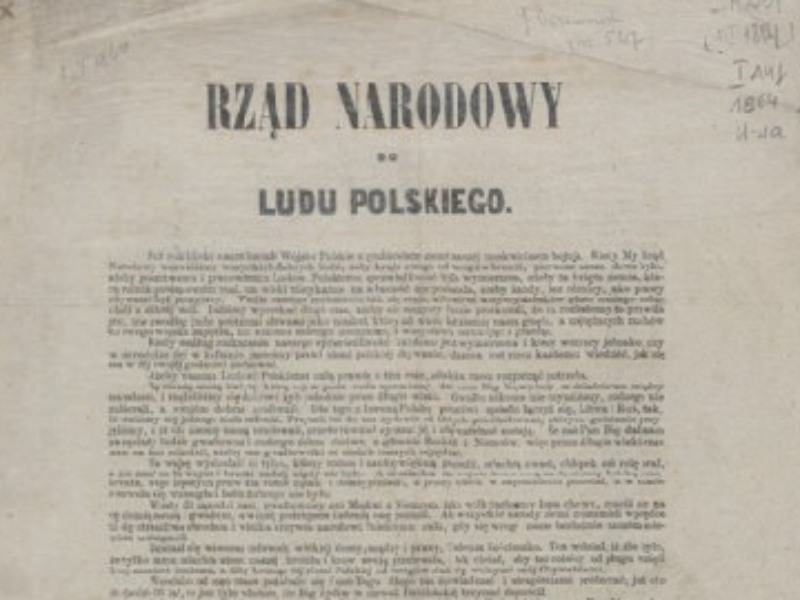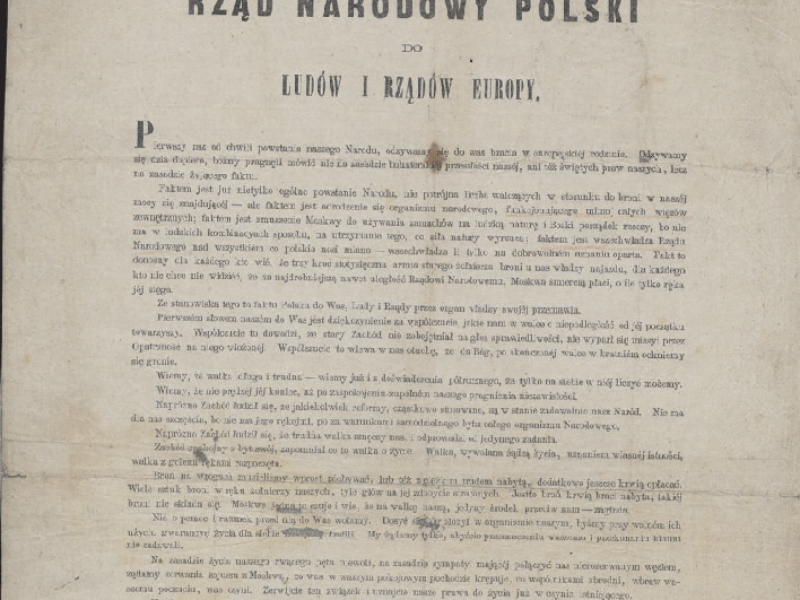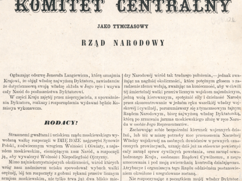 „Centralny Narodowy Komitet ogłasza kraj cały w stanie wyjątkowym, nakazuje wszystkim prawym synom Ojczyzny bronić się do upadłego od poboru,…