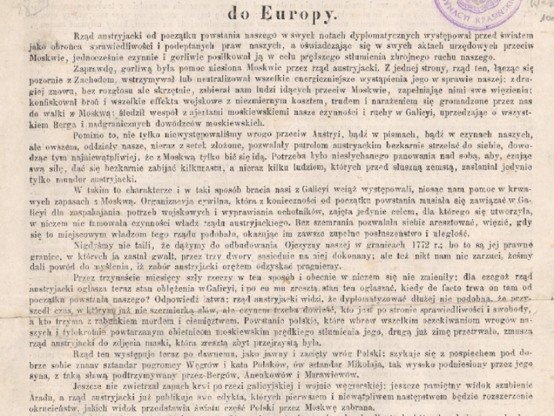 To była już ostatnia taka odezwa. „Dla pokazania wszelako tak rządowi rosyjskiemu jak i ogółowi polskiemu, że władze narodowe jeszcze…