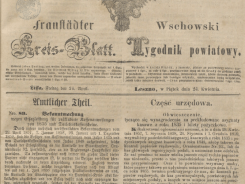 Królestwo Polskie. Skalmierzyce, 4. Kwietnia. – Dochodzi mnie w tej chwili o godzinie 2. po południu następująca wiadomość, którą w krótkości powtarzam (tak pisze korespondent ze Skalmierzyc do wrocławskiej gazety): dziś przed południem zamknięto naszą granicę i tak ma pozostać przez przeciąg świąt wielkanocnych. W Kaliszu naszym sąsiedzkim panuje wzburzenie umysłów, patrole przebiegają miasto,…