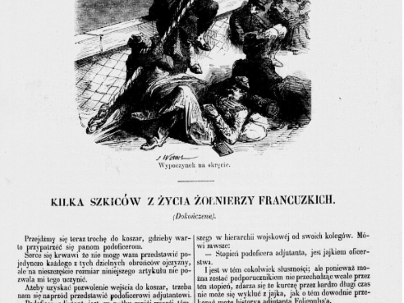 Warszawa, 12 stycznia. Dzięki czynnym i roztropnym rozporządzeniom władz miejscowych branka rekrutów w Warszawie odbyła się w zupełnym porządku. Nigdzie nie stawiono oporu. Rekruci chętnie słuchali zaleceń urzędników i byli zupełnie godni dobrego obejścia się, które im okazywano. Lecz można było przewidywać, że w prowincjach rzecz ta nie odbędzie się…
