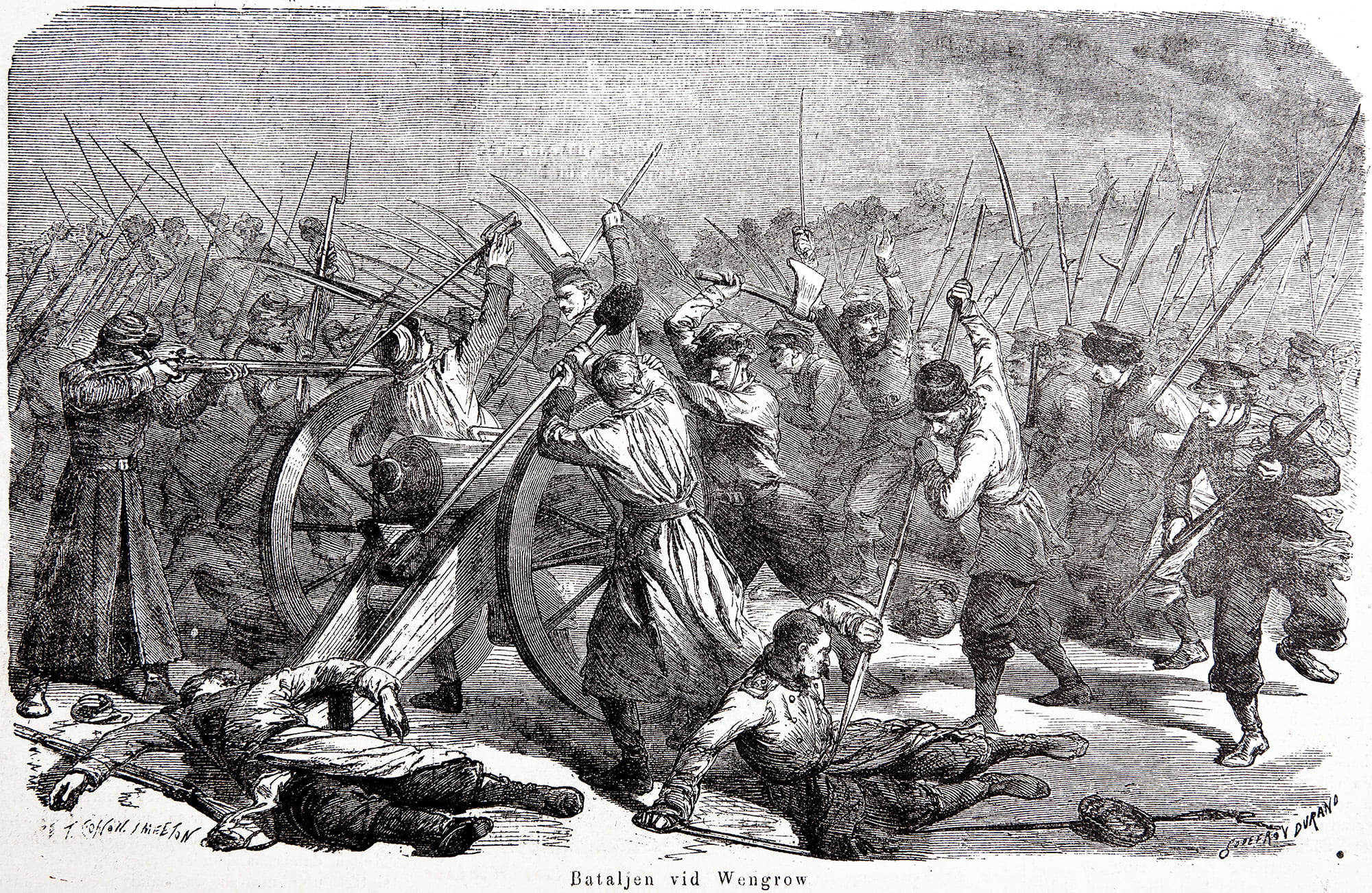 W styczniu 1863 powstanie obejmowało Królestwo Polskie, w lutym rozszerzyło się na Litwę, w kwietniu i maju sięgnęło okolic Dyneburga i Witebska oraz guberni kijowskiej i wołyńskiej. Znaczącej pomocy w walce zbrojnej z Rosją udzielali Polacy z Galicji i zaboru pruskiego, skąd napływali ochotnicy, broń i zaopatrzenie. Przybyli też ochotnicy z zagranicy – rewolucjoniści włoscy, węgierscy, francuscy, a także rosyjscy, choć ci ostatni udzielili pomocy mniejszej, niż oczekiwali Polacy. Najpoważniejszy zawód spowodowała bierna postawa chłopów, którzy wbrew nadziejom przywódców nie ruszyli masowo do szeregów powstańczych. Dekret uwłaszczeniowy bez wcześniejszej agitacji ideowej nie odegrał roli mobilizacyjnej, jednak w miarę rozwoju powstania w rejonach opanowanych przez polskie oddziały udział chłopów stopniowo wzrastał. Powstańcze oddziały zasilali przede wszystkim ochotnicy z ludu miejskiego, szlachta zaściankowa, robotnicy, inteligencja, młodzież gimnazjalna i studencka. Późną wiosną i latem 1863 w polu walczyło do 35 tys. powstańców. Siły Rosyjskie w samym tylko Królestwie 145 tys. żołnierzy.