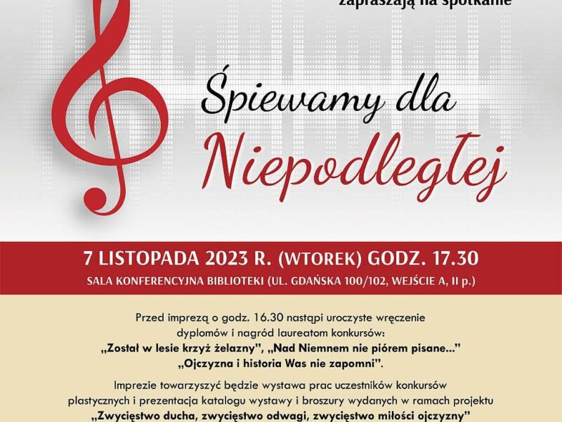 „ŚPIEWAMY DLA NIEPODLEGŁEJ” to impreza z okazji 105. rocznicy odzyskania Niepodległości, na której wykonane zostaną m. in. pieśni z Powstania Styczniowego.